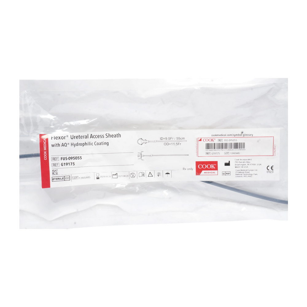 Flexor DL Ureteral Access Sheath G46075, Cook Flexor DL Dual Lumen Sheath, DL Ureteral Access Sheath 9.5 Fr 35 cm, Dual-Lumen Ureteral Access Sheath Cook G46075, Flexor Dual Lumen Sheath 35 cm